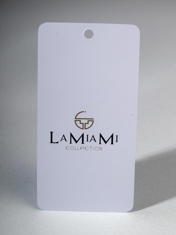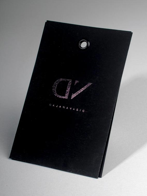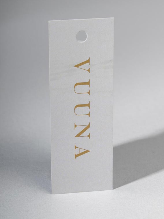 Ova vrsta podrazumeva samo štampu (ofset ili digitalnu) Visina i širina su proizvoljne, ali su u standardu najčešće manje od 120x60mm (mogu da budu i upola manje). Isecanje je pravolinijsko i zato je ova vrsta etiketa nešto jeftinija od ostalih, jer nema potrebe za izradom alata ili štancovanjem. Za štampu se koriste plemeniti materijali, tipa Fabriano, Favini, Stardream, Modiliani i slično. Radi se o kartonima koji su bojeni u masi i obrađeni tako da imaju bogatu teksturu i/ili specijalne premaze i efekte. Postoji na hiljade takvih specijalnih papira, raznih proizvođača, u mnoštvu varija. Ako vam do ruku dođe katalog nekog proizvođača možete naručiti etikete po komercijalnom nazivu, ili navratite do nas i izaberite nešto „neviđeno“…
