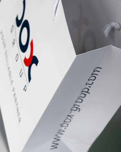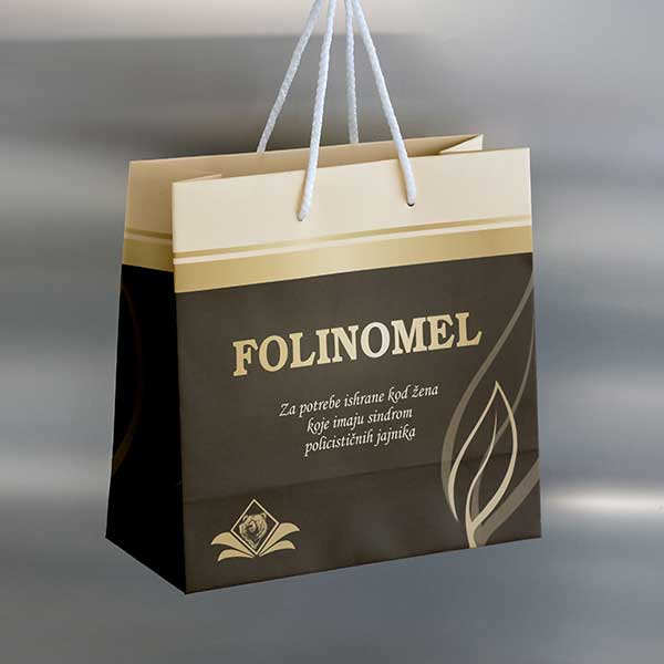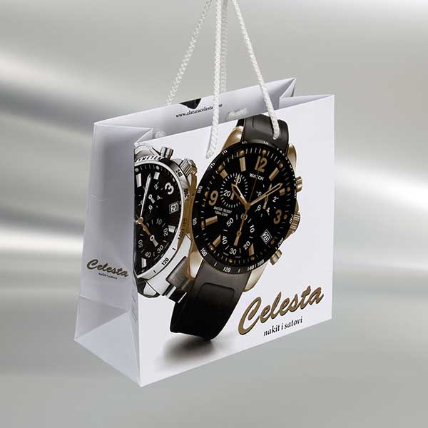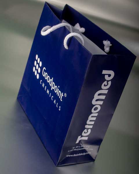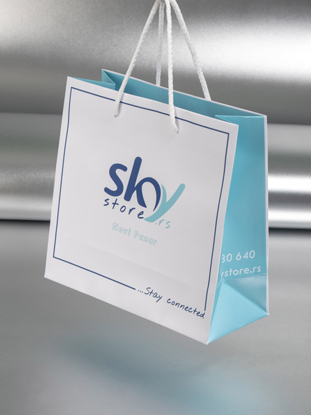 Kese se Izradjuju od 170 gr/m2 kunstdruka sa plastifikacijom i kartonskim ojačanjima (triplex 355 gr/m2) za dno i ručke. Ručke od pamučnog ili sintetičkog kanapa ~5 mm. U cenu je uračunata štampa u jednoj boji, i sjajna plastifikacija. Doplata za mat plastifikaciju je 0.02 € po kesi. Apliciranje postojećeg logotipa i slična jednostavna idejna rešenja su takođe uključena u cenu.
