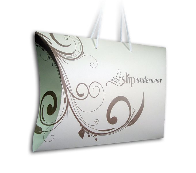 Ove štancovane kutije su izradjene od 280-350 gr/m2 bindakota, sa osnovnom štampom u jednoj boji (vidi→ doplate), sa sjajnom plastifikacijom. 1/0. Doplata za mat plastifikaciju je 0.04 € po kutiji. Ručka od pamučnog ili sintetičkog kanapa u boji 5 mm. U cene je uračunata i izrada idejnog rešenja→ (dizajn).
