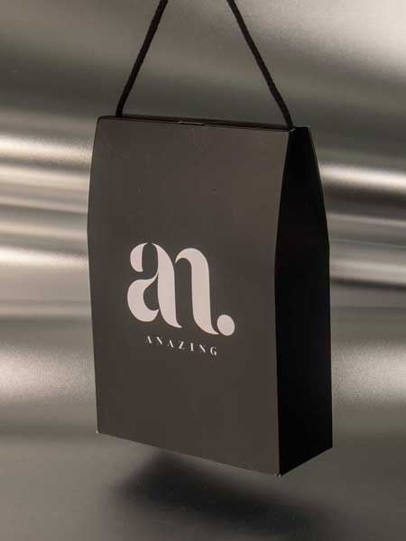 Kartonske kutije sa ručkom su namenjene za brzo i atraktivno pakovanje za parfimerije, zlatare, prodavnice poklona i slično. Specijalno tzv automat dno omogućava da se roba zapakuje (kao poklon) u dekorativnu ambalažu za samo nekoliko sekundi. Po želji moguće je dodati i ukrasnu nalepnicu koja se lepi na poklopac.